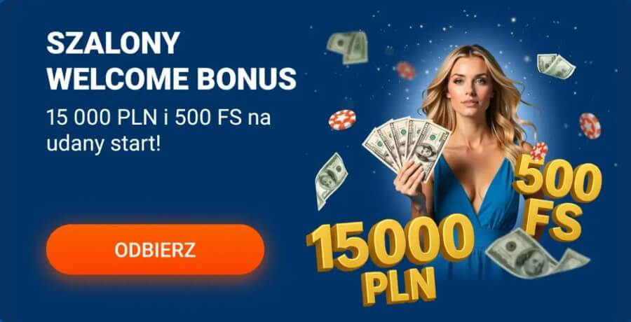 1. Bonus dla nowych graczy – do 15 000 zł + 500 darmowych spinów