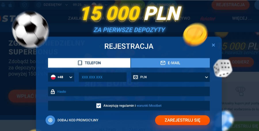 Operator udostępnia kilka metod rejestracji nowego konta MostBet – bezpośrednio ze strony lub przez email, przez sieci społecznościowe oraz oczywiście przez telefon.