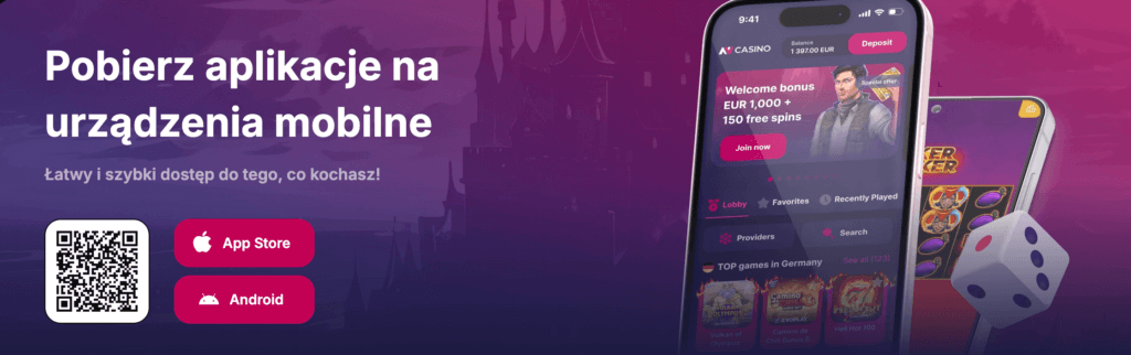 Aplikację NVcasino możesz pobrać zarówno z App Store jak i na Androida. Natomiast najszybszą metodą jest zeskanowanie kodu QR bezpośrednio na stronie kasyna. Użytkowanie aplikacji jest intuicyjne, a sama apka zawiera wszystkie gry, bonusy i wiele więcej udogodnień, o których możesz przekonać się sam!