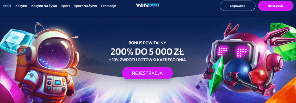 Pełna analiza i opinie ekspertów o kasynie WIntariDokładna analiza kasyna Wintari czeka na Ciebie. Nowy operator chce zaistnieć na rynku poprzez rozbudowaną bibliotekę gier i ciekawe bonusy dla stałych graczy. Wintari charakteryzuje się nowoczesnym i kosmicznym wyglądem. W tym miejscu czeka na Ciebie dokładna analiza kasyna, opinie graczy i warunki, o których warto wiedzieć. Wintari czeka na Ciebie!